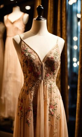 Elegant and luxurious dress showcased at the shopping mall with copy space included