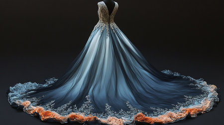 3D illustration of a beautiful blue wedding dress on a black background