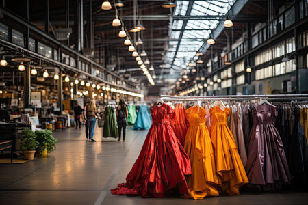Fashion Warehouse Various clothes hanging on rails., generative AI