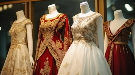 Draped in Tradition. Exquisite Turkish Wedding Dresses on Mannequins. Generative AI
