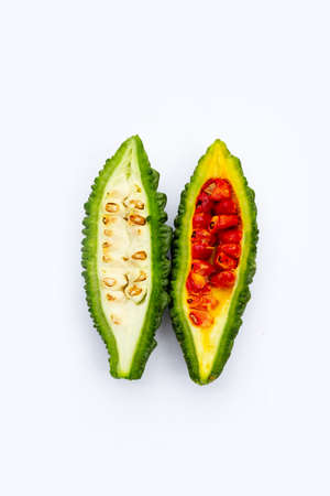 wild bitter gourd, Balsam apple, Balsam pear, Bitter cucumber or Bitter gourd isolated on white background