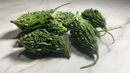 Bitter melon, Bitter gourd isolated on tiles background. Green Vegetables