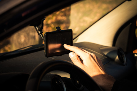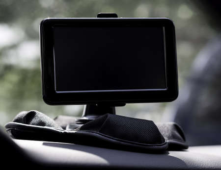 GPS navigator in the car, modern device to find right route, electronic maps all over the world, global positioning system, travel and road trips concept