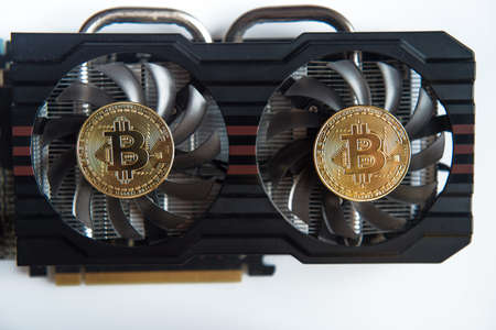 Video card and bitcoin on a white background