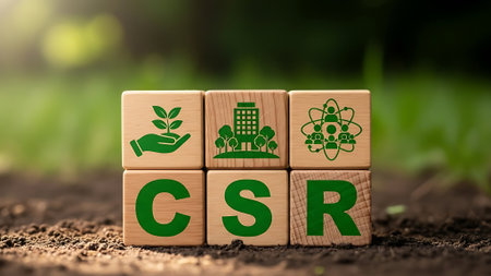 CSR Corporate Social Responsibility acronym on cubes on blue background