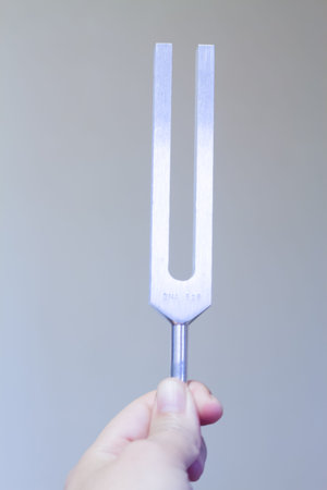 tuning fork and crystal on table .