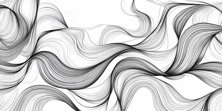 Abstract wave pattern with dynamic lines and flowing curves in monochrome design.