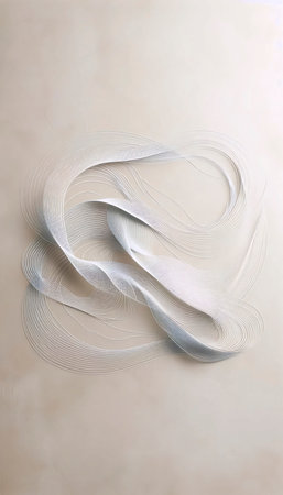 Flowing forms and wavy lines intertwine in a striking black and white display, creating depth and movement on a soft, light backdrop.