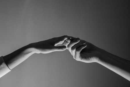 hand reaches for hand towards each other