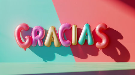 GRACIAS message in 3D lettering style in pink and blue colors. Communication template concept. Generative AI.