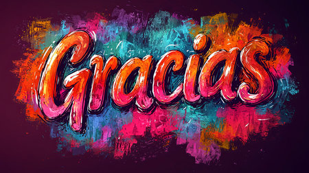 Vibrant and colorful hand-drawn illustration of the Spanish word 'Gracias' in bold, artistic lettering. Perfect for expressing gratitude and appreciation in a creative, eye-catching way.