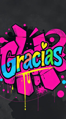 Colorful graffiti mural with the word Gracias in a vibrant urban setting