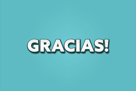 Gracias. A Illustration with white text isolated on light green background.