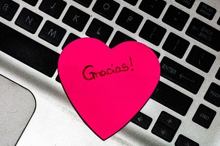 Writing on colorful sticky note Gracias. Text with Gracias on paper.