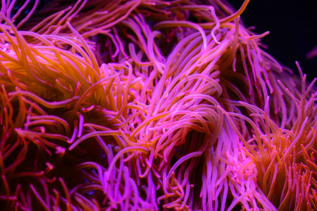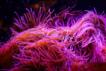 Beautiful sea anemones growing in the aquarium in Germany. Underwater scenery.