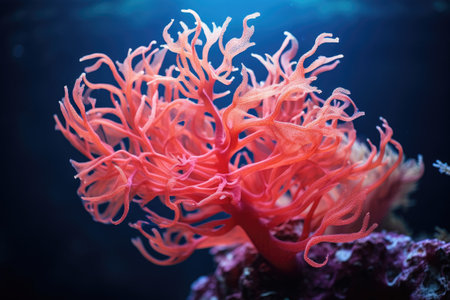 Beautiful red coral in deep blue sea. Underwater photography, beautiful coral, AI Generated