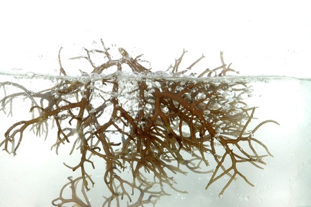 fresh brown seaweed in the water isolated on white background
