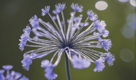 This image captures delicate purple flowers with fine stems set against a soft blue background, evoking a tranquil and ethereal feeling perfect for decor.