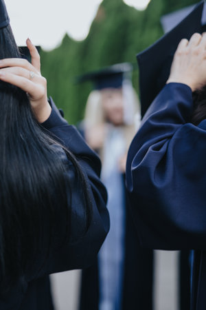 Unforgettable Graduation Day. Celebrating Achievements with Friends, Memories, and Throwing Caps in the Park.