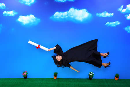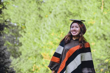 Attractive Asian Women Student Graduate in cap and gown celebrating with certificate in hand and so proud happiness in Commencement day,Congratulation of student in graduation day,Education Success