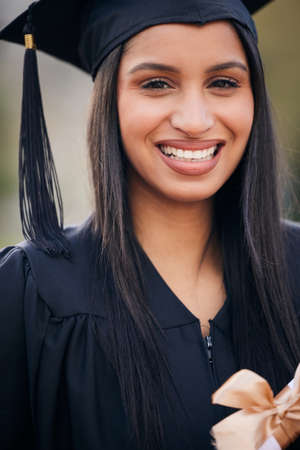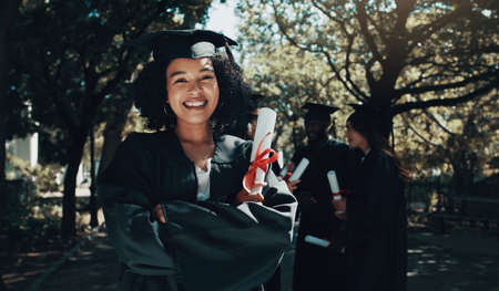 Your girl just got qualified. Portrait of a young woman holding her diploma on graduation day.
