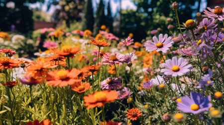 A stunning array of colorful flowers in a vibrant garden setting. This composition showcases the beauty and diversity of nature, perfect for floral themes.