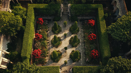 An aerial view of a labyrinth garden AI generated