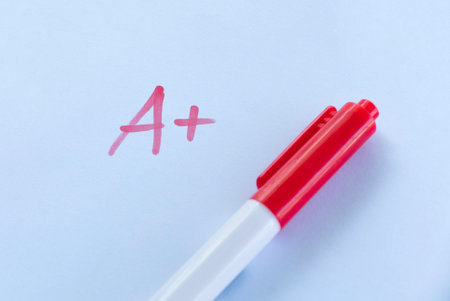 Grade A+ on paper with a felt pen