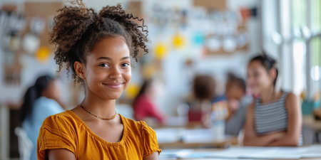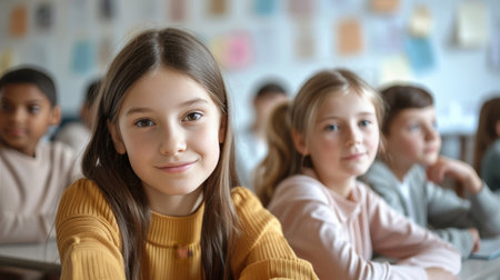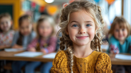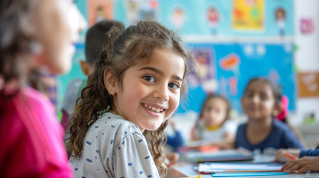 Smiling Girl in Classroom Capturing Joyful Moments of Learning and Friendship.
