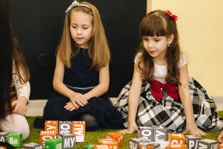 Generative AI : Happy children girls girlfriend schoolgirl student elementary school
