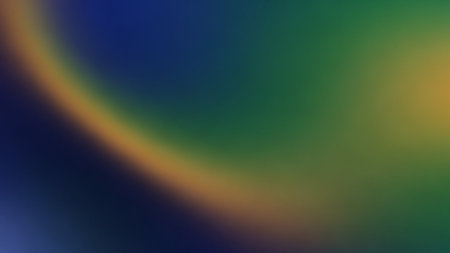 A smooth, blurred abstract gradient blending deep blue, dark green, and warm orange-yellow hues with soft edges.
