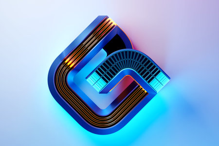 3d font Letter O uppercase. Glossy blue and orange metal font on white background.