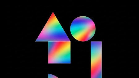 Detailed composition of circles, semicircles, and triangles with glossy effects and smooth gradients. A sleek and modern vector design for creative and tech-inspired projects