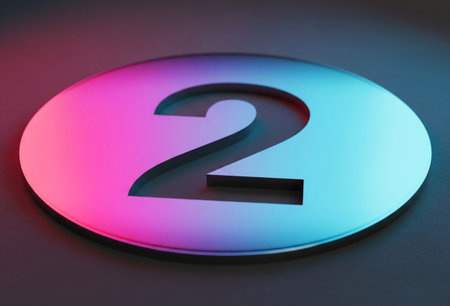 a close up of the number two in an oval shape with pink and blue lighting effect