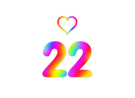Number 22 with heart icon. Rainbow gradient design. Vector illustration.
