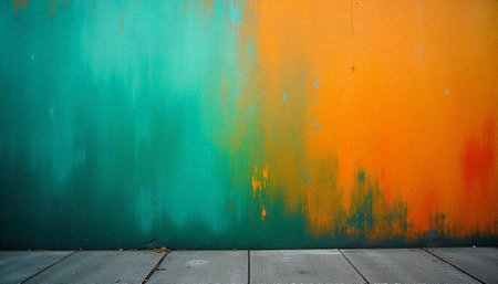 Abstract colorful wall with artistic gradient and concrete floor