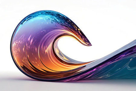 Waves roll across the ocean with bright colors, reflecting the beauty of nature under a cloudy sky.