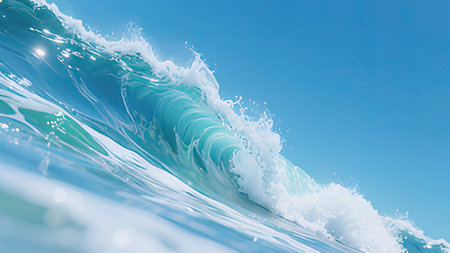 CloseUp Ocean Wave Curling With Spray, Majestic Blue Barrel, HighSpeed Capture Of Translucent Water,