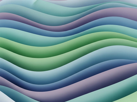 Abstract wavy landscape of smooth, rippling lines in a blue and green gradient. Clear details and vibrant colo...