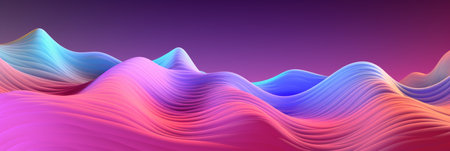 Flowing waves of vibrant pink, blue, and purple create an abstract landscape against a smooth gradient backdrop, showcasing a mesmerizing interplay of colors and shapes.