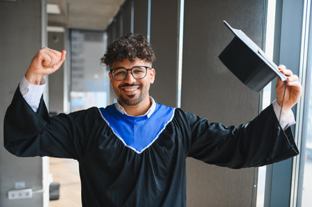 portrait of successful indian student in graduation gown