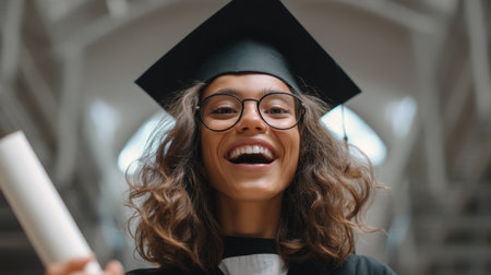 Woman is happy to have achieved graduation and success in studies