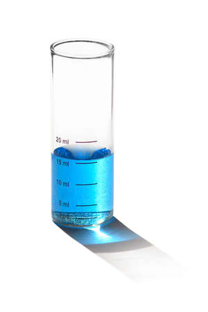 Glass test tubes or flasks with blue liquid on white background for scientific analysis. laboratory research and development concept. scientist sample chemistry or medicine test