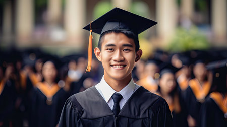 Asian young male smiling graduate against the background of university graduates.