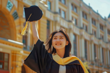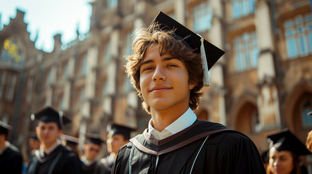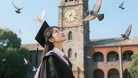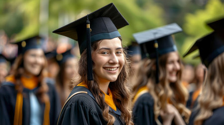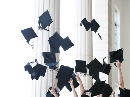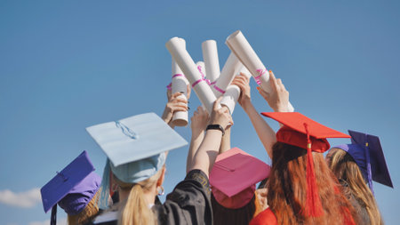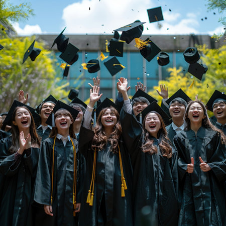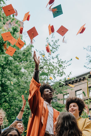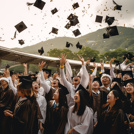 Students throw caps in the air, congratulating graduation each other. It is s a moment of success, unity, and university memories.