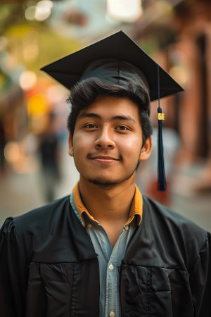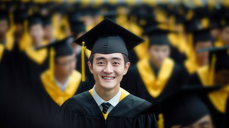Happy indian male graduate against the background of university graduates. Generative Ai