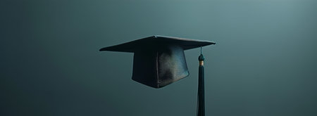 Graduation cap against a soft blue gradient background evoking celebration and achievement
