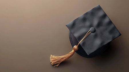 photo of a student's academic cap on a plain brown background. Graduation atmosphere. copy space
