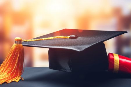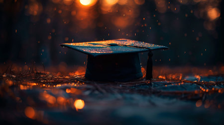 A graduation cap with a tassel showcased against a vibrant bokeh background, capturing the essence of celebration, achievement, and academic success.