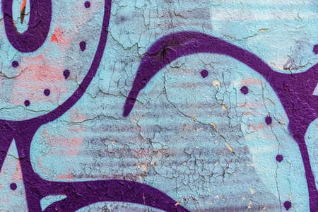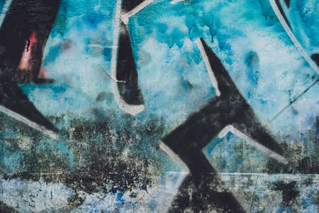 Fragment of graffiti drawings. The old wall decorated with paint stains in the style of street art culture. Colored background texture in cold tones.